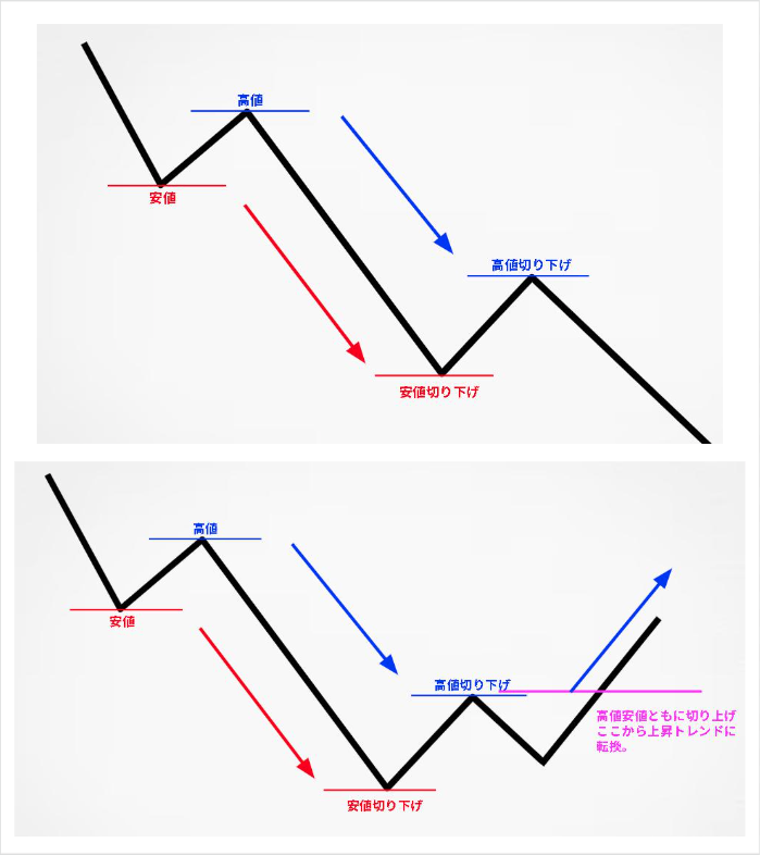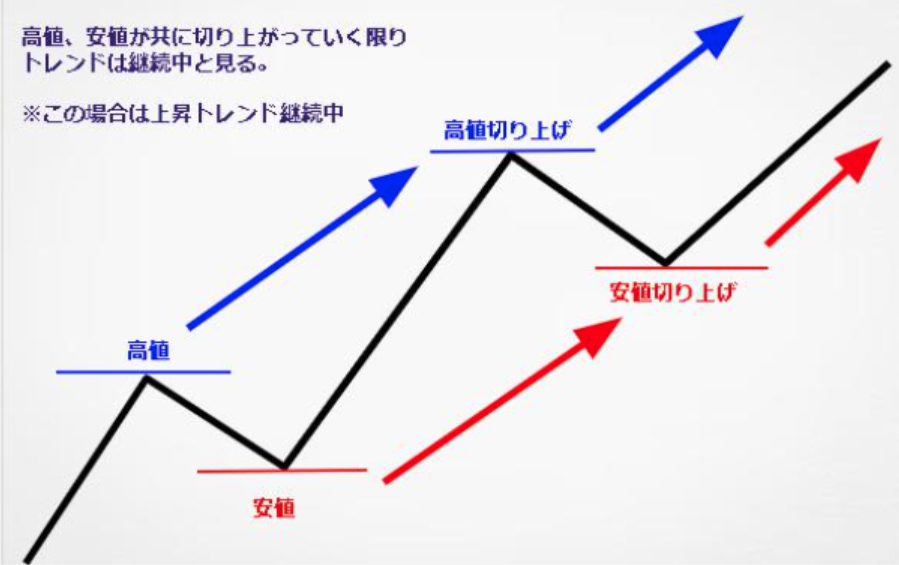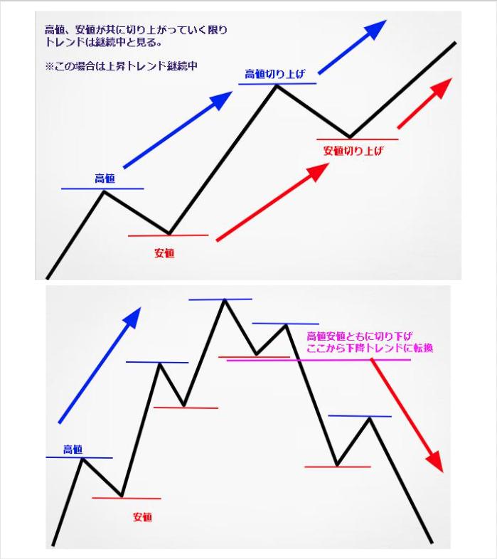 “高値・安値のセット”で見ていくのがダウ理論の基本です。