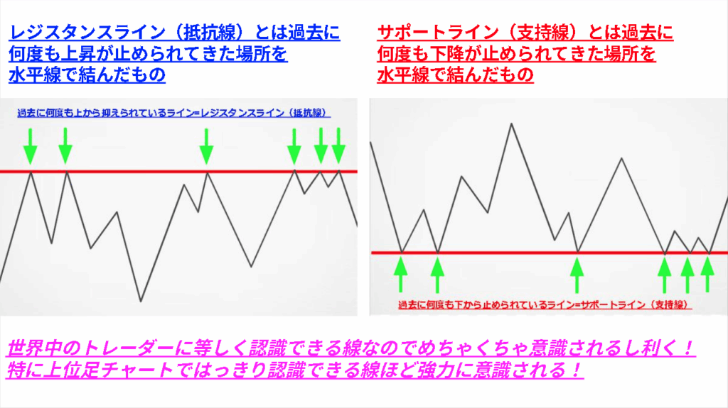 ※上位足環境で意識されているラインになればなる程、強く抵抗として効くラインになります。