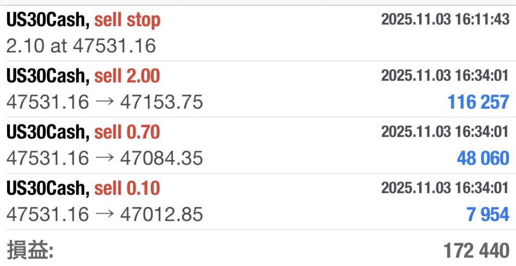 【FXトレード解説】US30Cash(NYダウ)/2025.11.03